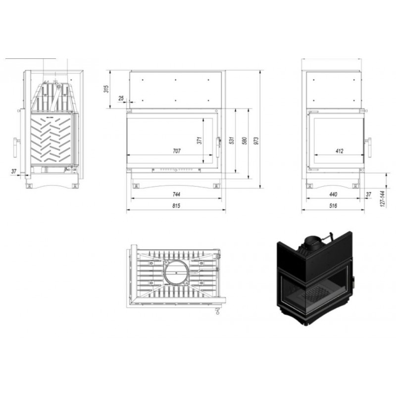 KRATKI OLIWIA/L/BS 18 kW krbová vložka teplovzdušná, boční levé skloVýkon: 18 kW