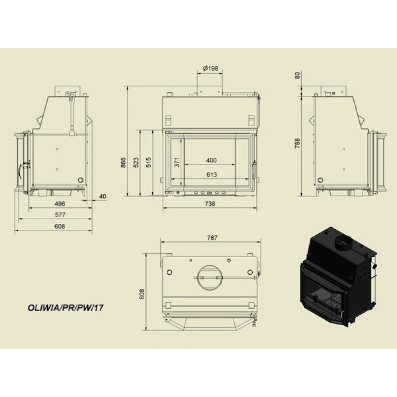 KRATKI OLIWIA/PR/PW/17/W krbová vložka teplovodní, prizmatické sklo, s chladící smyčkouVýkon nominální: 17 kw