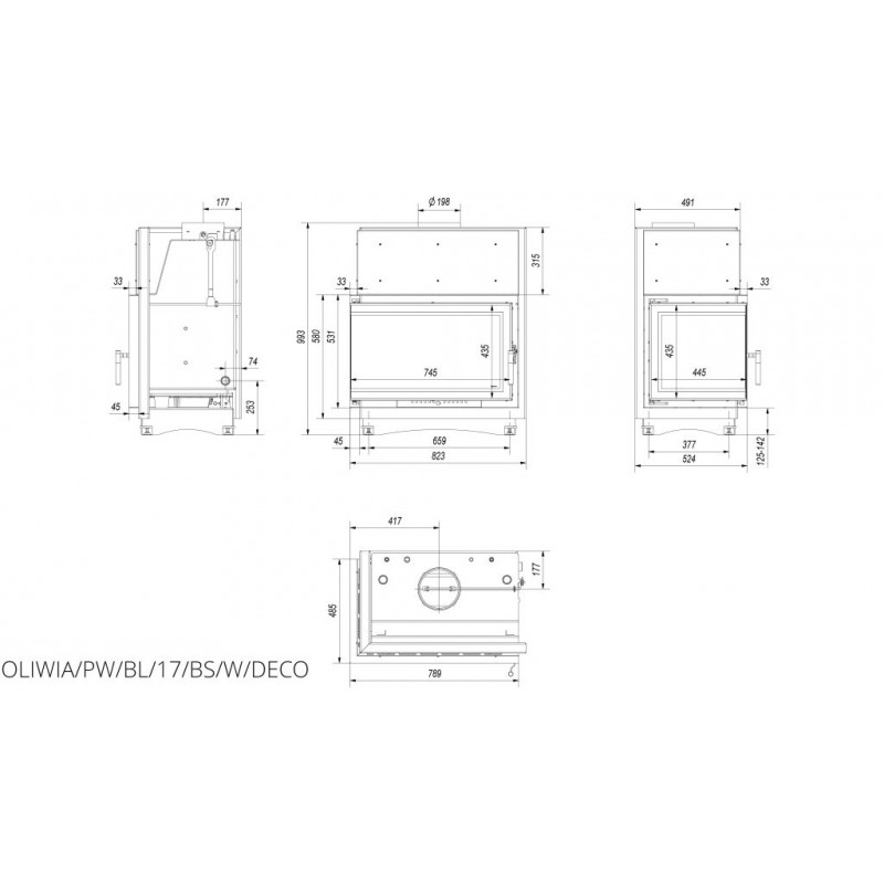 KRATKI OLIWIA/PW/BL/17/BS/W/DECO krbová vložka teplovodní, levé sklo, s chladící smyčkouVýkon nominální: 17 kw