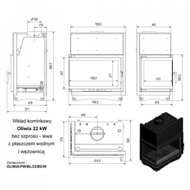 KRATKI OLIWIA/PW/BL/22/BS/W krbová vložka teplovodní, levé sklo, s chladící smyčkouVýkon nominální: 22 kw