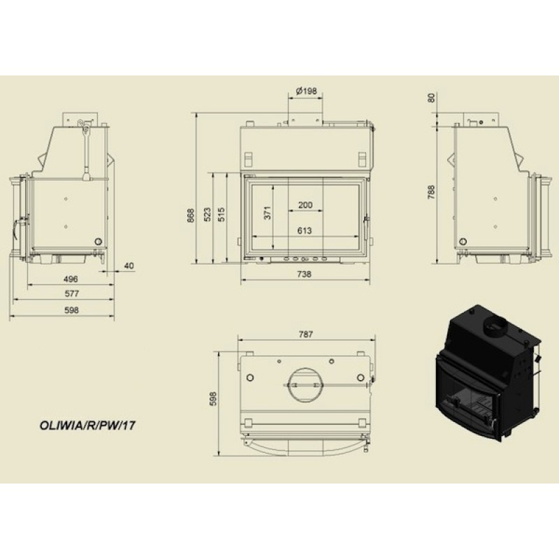KRATKI OLIWIA/R/PW/17 krbová vložka teplovodní, obloukové sklo, bez chladící smyčkyVýkon nominální: 17 kw