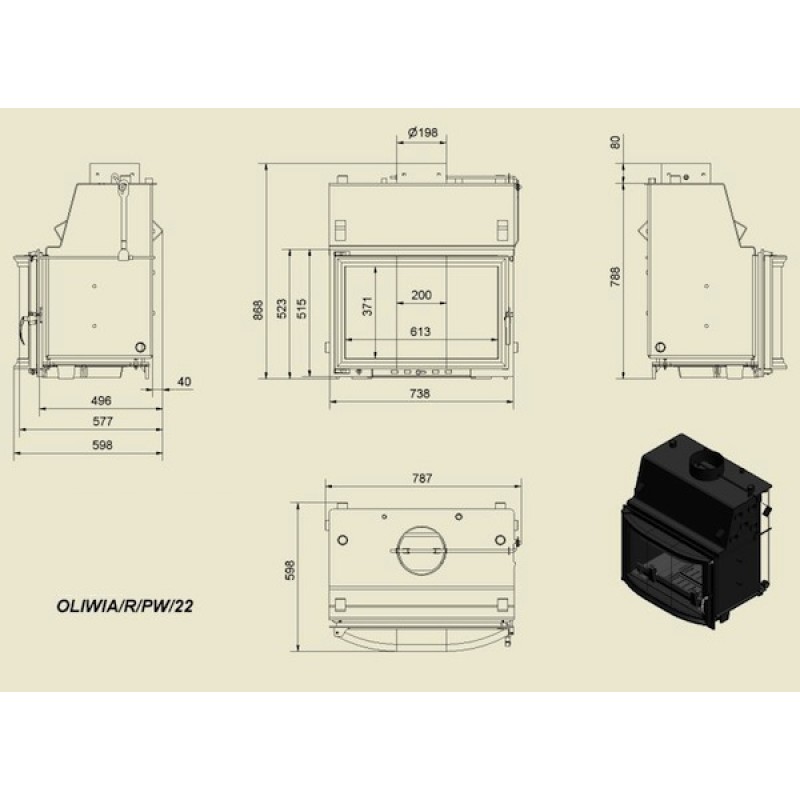 KRATKI OLIWIA/R/PW/22/W krbová vložka teplovodní, obloukové sklo, s chladící smyčkouVýkon nominální: 22 kw