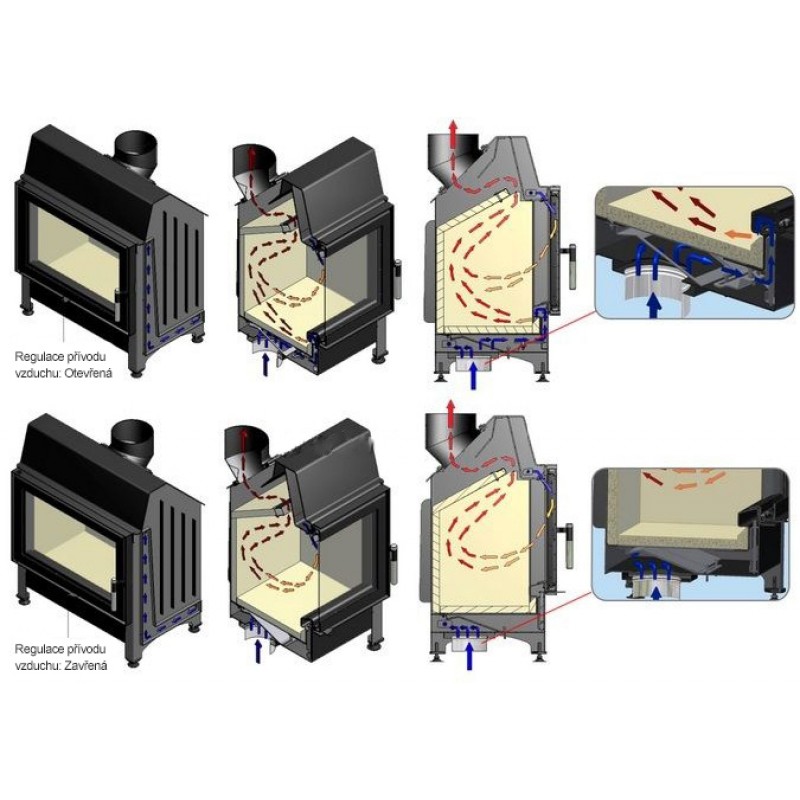 - součástí krbové vložky je zabudovaný přívod vzduchu o průměru 125 mm