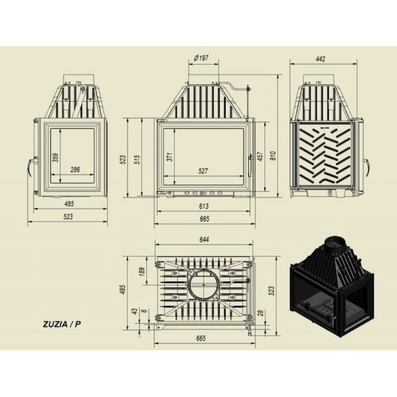 KRATKI ZUZIA/P 16 kW krbová vložka teplovzdušná, pravé sklo se sloupkemVýkon: 16 kW