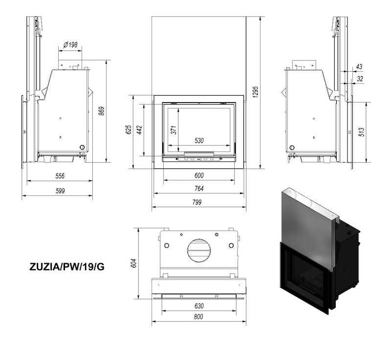 KRATKI ZUZIA/PW/19/G/W krbová vložka teplovodní, výsuvné sklo, s chladící smyčkouVýkon nominální: 19 kw