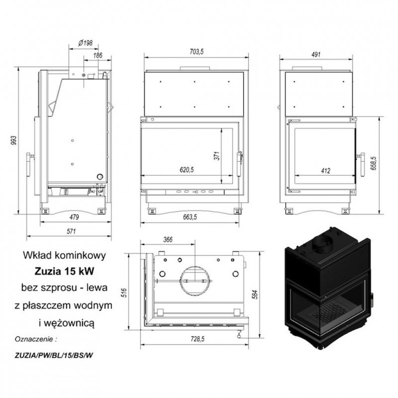 KRATKI ZUZIA/PW/BL/15/BS/W/DECO krbová vložka teplovodní, levé sklo, s chladící smyčkouVýkon nominální: 15 kw