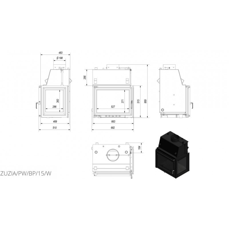 KRATKI ZUZIA/PW/BP/15/W krbová vložka teplovodní, pravé sklo, s chladící smyčkouVýkon nominální: 15 kw
