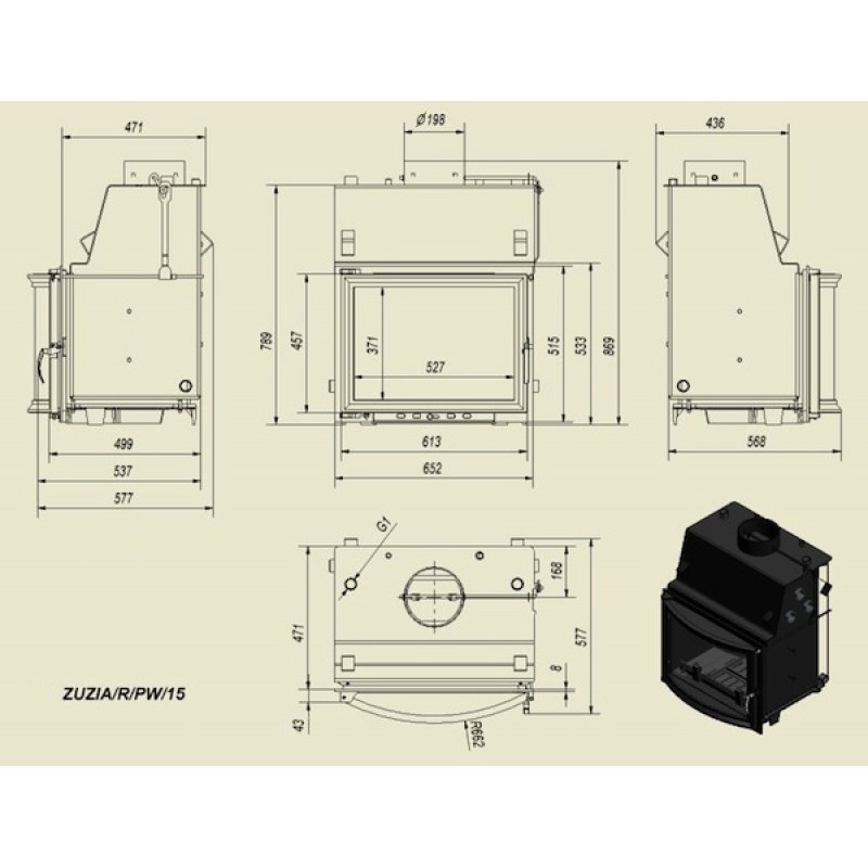KRATKI ZUZIA/R/PW/15/W krbová vložka teplovodní, obloukové sklo, s chladící smyčkouVýkon nominální: 15 kw