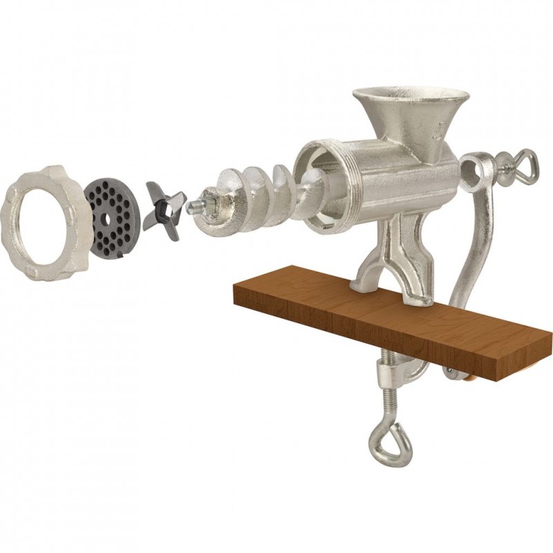 Mlýnek na maso s upínacím mechanismem a dřevěným madlem kličky