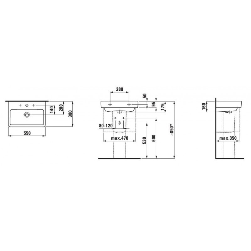 LAUFEN PRO A Umyvadlo Compact 55x38 cm, s otvorem, bílé 8.1895.8.000.104.1- barevné provedení bílá