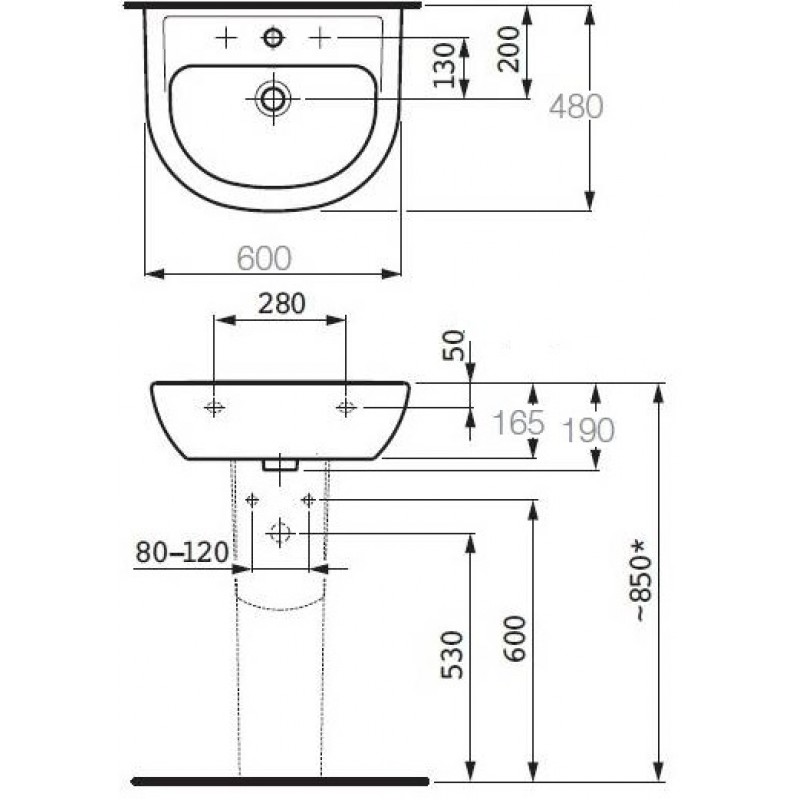 Laufen PRO B Umyvadlo 60x48 cm, bez otvoru a přepadu, bílé, 8.1095.2.000.142.1- bez otvoru pro baterii, bez přepadu a bez otvoru v odtokovém ventilu