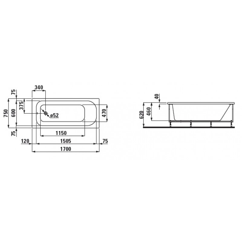 LAUFEN SOLUTIONS Vana 170x75cm, 155l, bílá, 2.2350.0.000.000.1- akrylátová