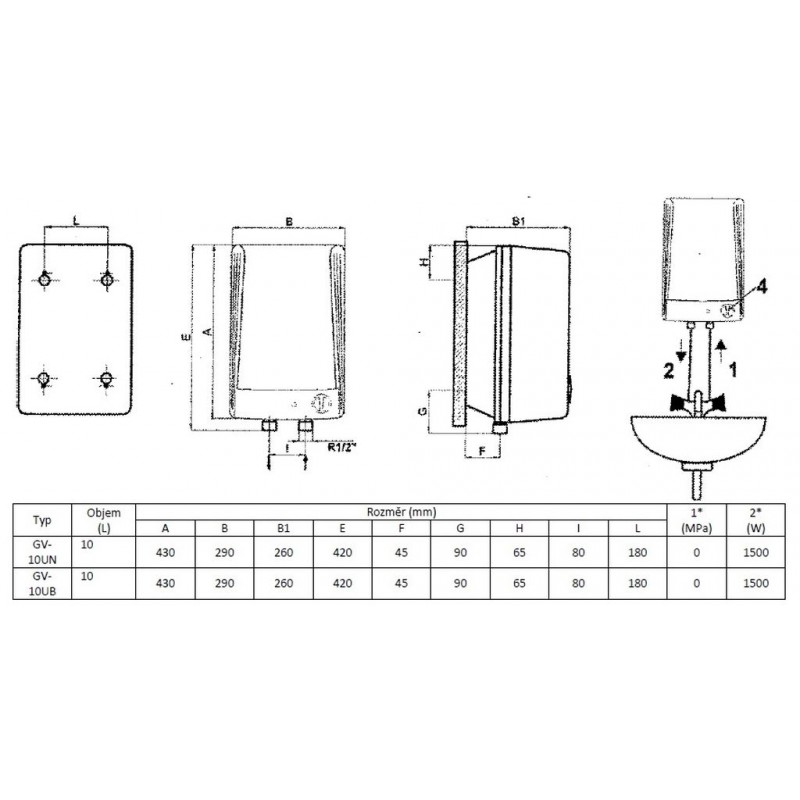 LEOV 10 l elektrický ohřívač vody, objem 10 l, instalace nad umyvadlo, LEOV10UP