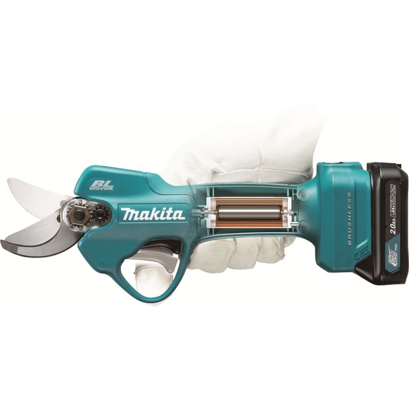 Nůžky umožňují velmi čistý střih větví až do průměru 25 mm a disponují spolehlivým bezuhlíkovým motorem pro dlouhou životnost a vysoký výkon. Technologie XPT umožňuje použití i v prostředí se zvýšenou prašností nebo vlhkostí. Praktický indikátor vybití akumulátoru a indikátor přetížení stroje zvyšují bezpečnost práce. K dispozici je možnost nastavení dvou průměrů rozevření nožů – 18 mm a 25 mm.