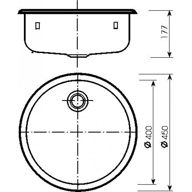 NORMA 526-UT dřez kruhový s přepadem, nerez, R=40 cmNerezový kruhový kuchyňský dřez Norma Frýdlant 526 UT pro zapuštění do kuchyňské desky 20 – 40 mm. Jednodřez v rozměru 400 mm, odtokový otvor 1,5 ".