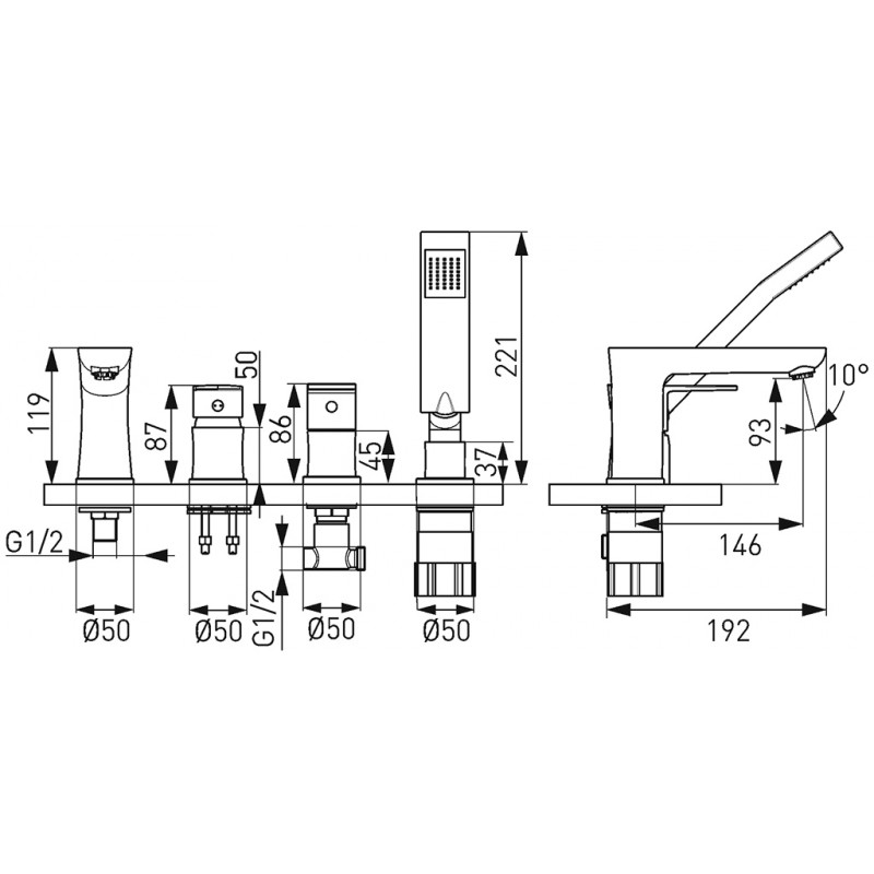 ALGEO SQUARE vanová 4-otvorová stojánková baterie chrom 82045,0 ..ilustrační fotoObrázky se mohou lišit od originálního produktu/položky.