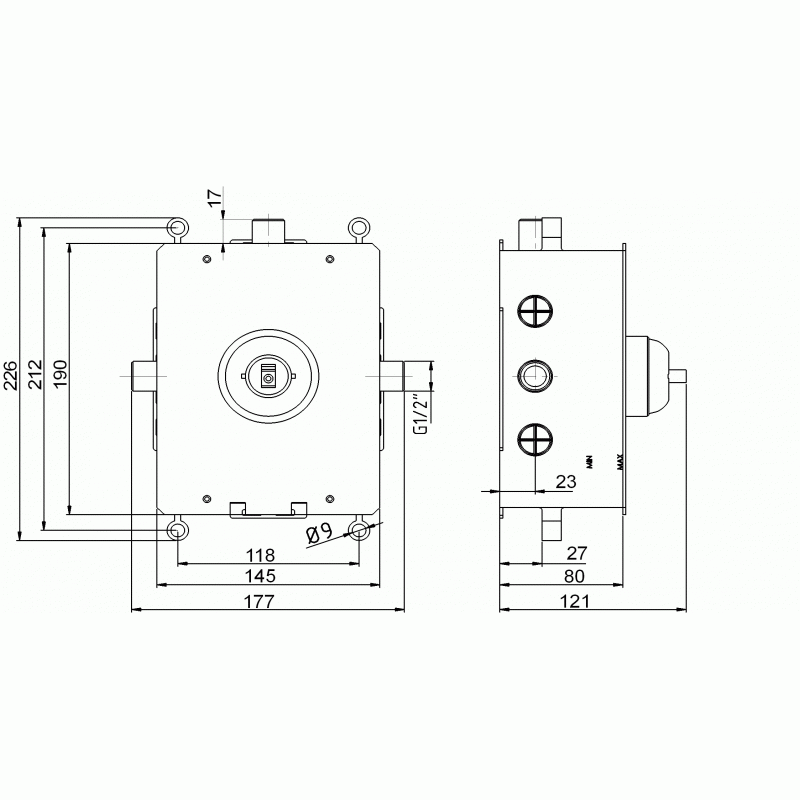 Podomítkový montážní box s vodovodní baterií určený k pohodlnému zabudování do zdi nebo sádrokartonu. Možnost volby výběru ze 4 designových krytů a ovládacích pák (Metalia 55, 56, 57 a Titania LUX). Ilustrační foto