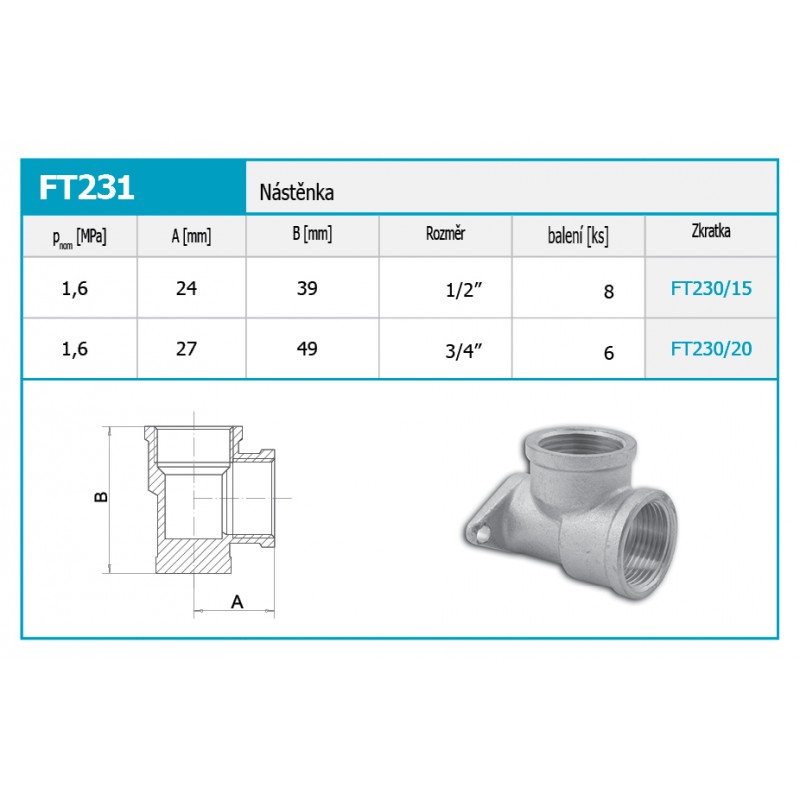 NOVASERVIS nástěnka 3/4" x 3/4" mosaz FT231/20Rozměr: 3/4" x 3/4"