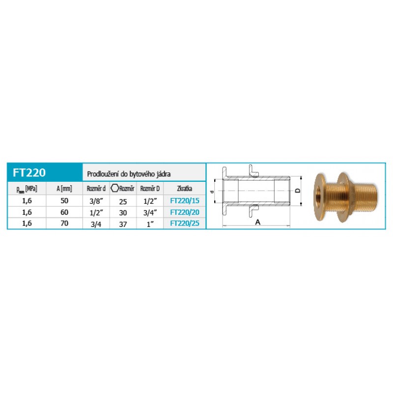 NOVASERVIS Prodloužení do bytového jádra 1/2"X3/4" mosaz FT220/20INSTALETÉRSKÝ PROGRAM