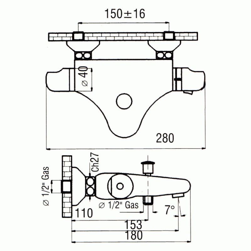 NOVASERVIS QUARK termostatická baterie vanová nástěnná chrom 2220,0Provedení : chrom