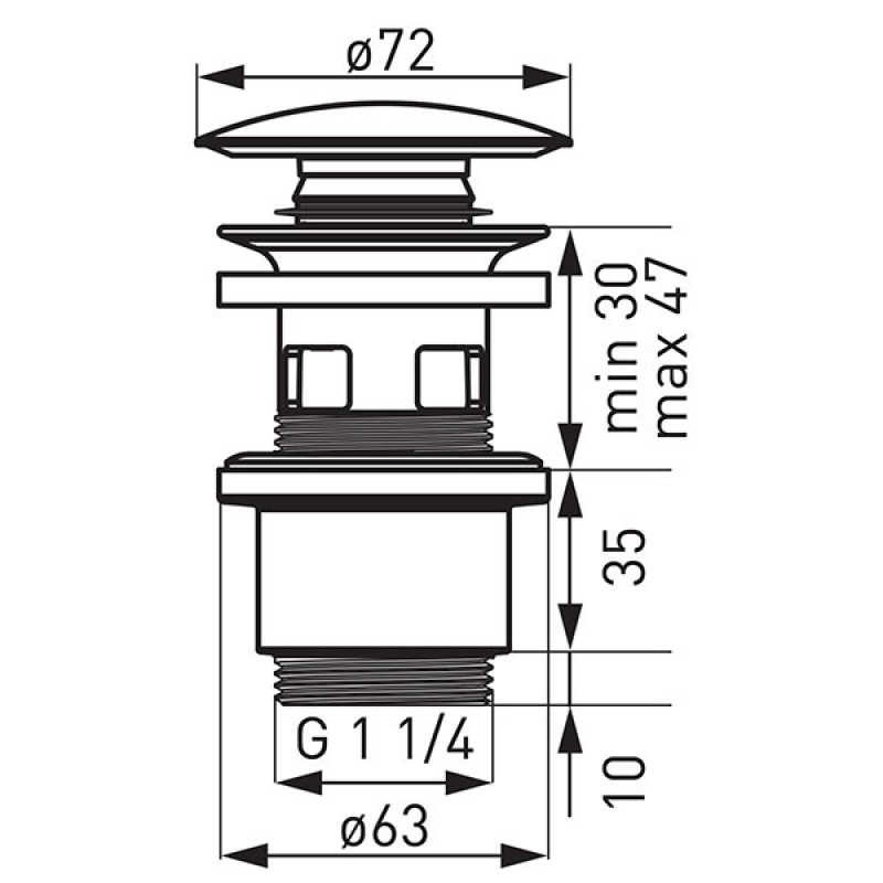NOVASERVIS Uzávěr výpusti plastový pro umyvadlo s přepadem 5/4" černý,chrom S288PPCB