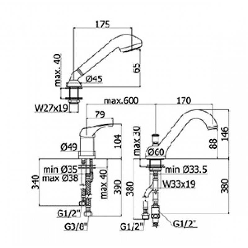 Vanová stojánková baterie do okraje vany nebo přizdívky.- s výsuvnou sprchou a vanovým vyústěním