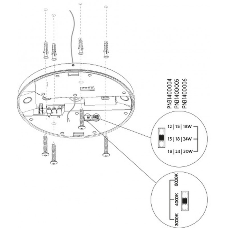 • Pomocí switche, který je dostupný po sundání krytu svítidla, lze snadno nastavit teplotu barvy a výkon / intenzitu osvětlení (viz návod)