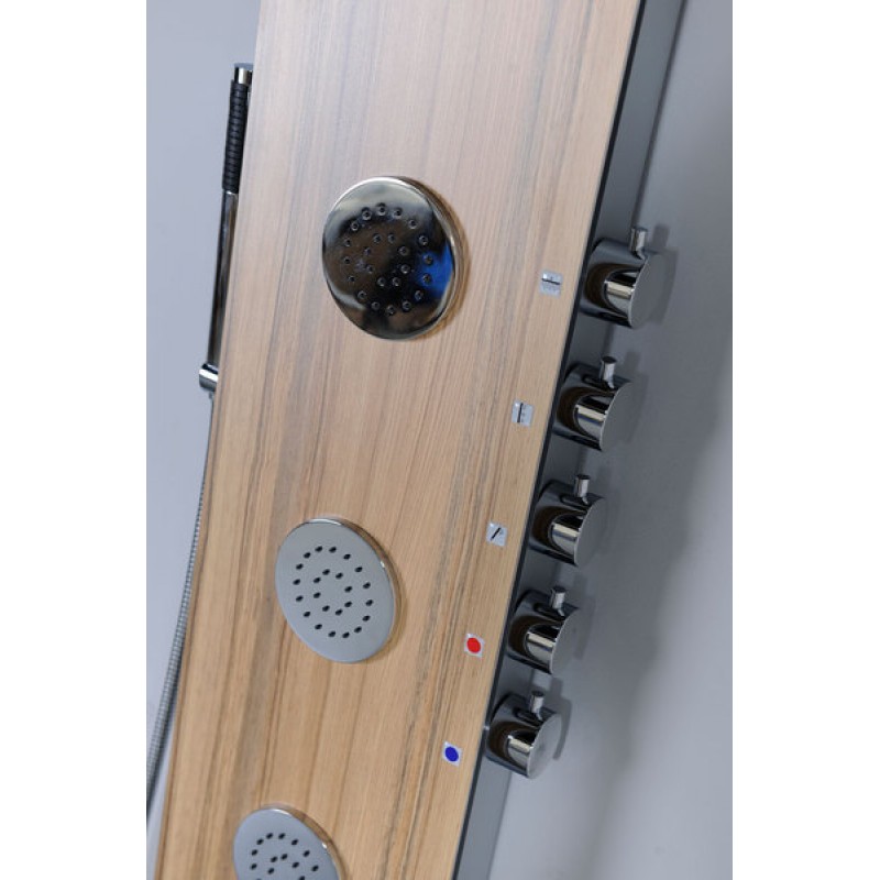 POLYSAN 5SIDE ROUND sprchový panel 250x1550mm, kokosSprchový kout v moderní koupelně dotváří elegantní sprchový panel, který oproti klasické baterii nabízí výběr proudu vody nejenom z ruční sprchy, ale i z hlavové sprchy, popřípadě i z masážních trysek. Sprchové panely lze zvolit v moderním stříbrném, efektním dřevěném nebo čistém bílém dekoru a tím lze získat perfektní soulad s obkladem interiéru. Panel 5SIDE je vyroben z kompozitního materiálu nebo akrylátu (bílá barva) a je určen pro montáž na stěnu. Ovládací prvky panelu jsou netradičně umístěny na boku, čímž je možno využít celé přední plochy panelu pro větší masážní trysky.