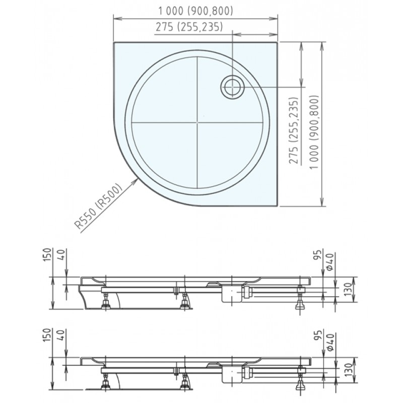POLYSAN Sprchová vanička SONATA R50 80 čtvrtkruhová s konstrukcí- s nosnou konstrukcí
