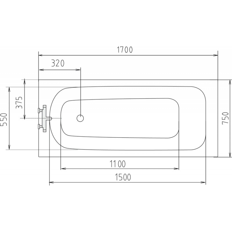 POLYSAN LAURA obdélníková vana 170x75x39cm, bílá 25611
