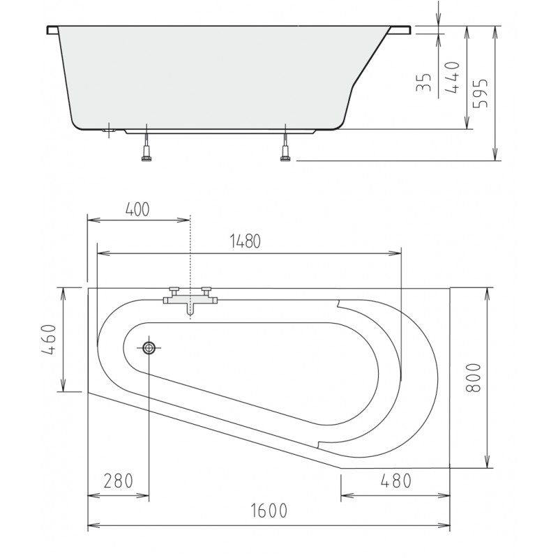 POLYSAN PROJEKTA R asymetrická vana 160x80x44cm, bílá 21111