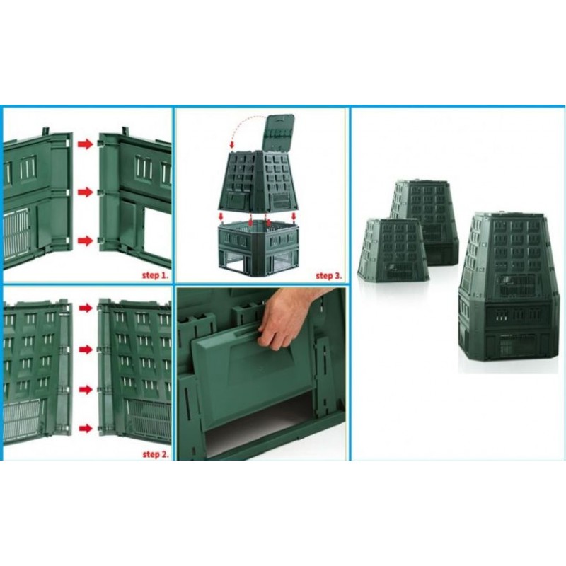 Kompostér EVOGREEN o objemu 650 litrů využijete pro zahrady o ploše do velikosti 400 čtverečních metrů. Kompostér je vybaven odvětrávacími otvory pro správnou cirkulaci vzduchu a zajištění správných podmínek pro tvorbu kompostu. Jeho provedení bez dna umožňuje půdním organismům přímý přístup k biologicky rozložitelnému odpadu. Kompostér je v dolní části opatřen otvorem pro vybírání vzniklého kompostu.