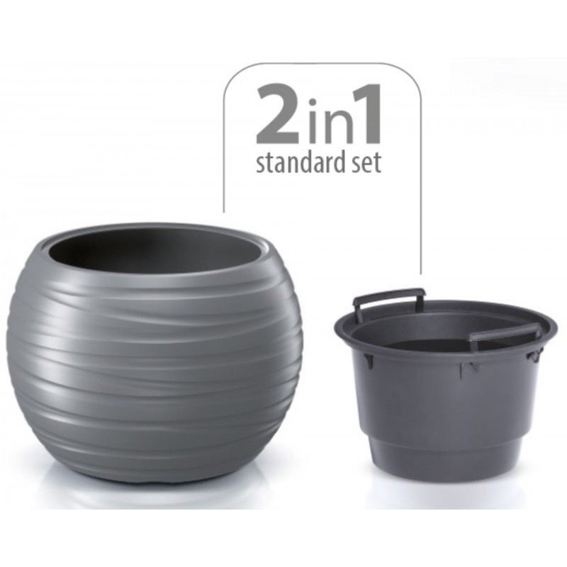Prosperplast MAZE Květináč kulatý s vkladem 43,6cm, šedý kámen DBMZK440
