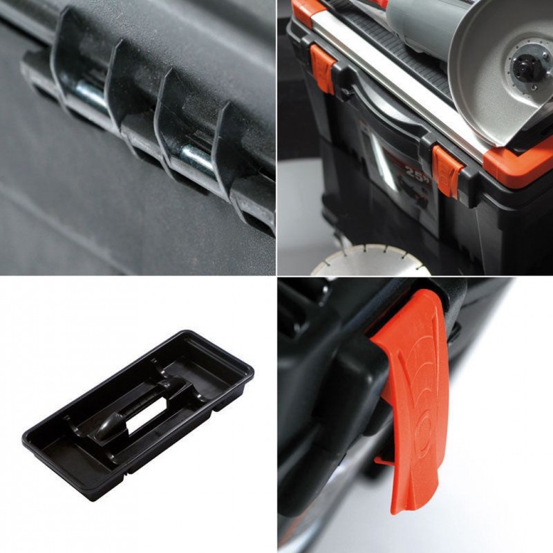 Nejmenší kufr z řady Mustang využijete na menší nářadí a pomůcky pro kutění. Uvnitř je odnímatelná přihrádka a na víku jsou k dispozici 2 samostatné organizéry. Nosnost 6 kg.Největší kufr na nářadí z řady Mustang má taktéž vnitřní odnímatelnou přihrádku a 2 velké organzéry na víku. Díky širokému hliníkovému držadlu a 2 zámkům unese až 25 kg nákladu.