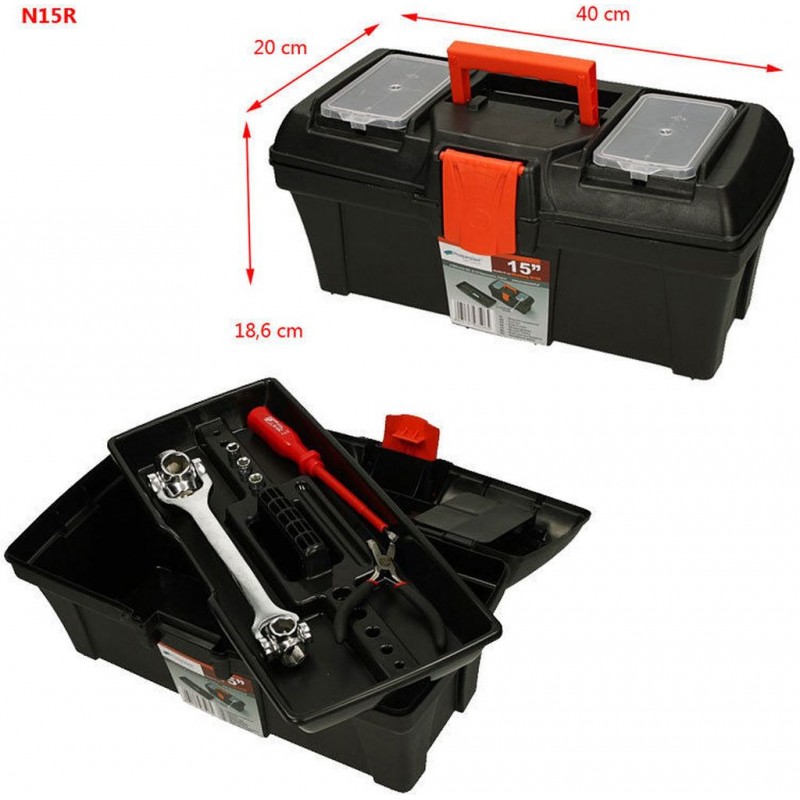 Prosperplast MUSTANG Plastový kufr na nářadí černý, 398 x 200 x 186 mm N15R