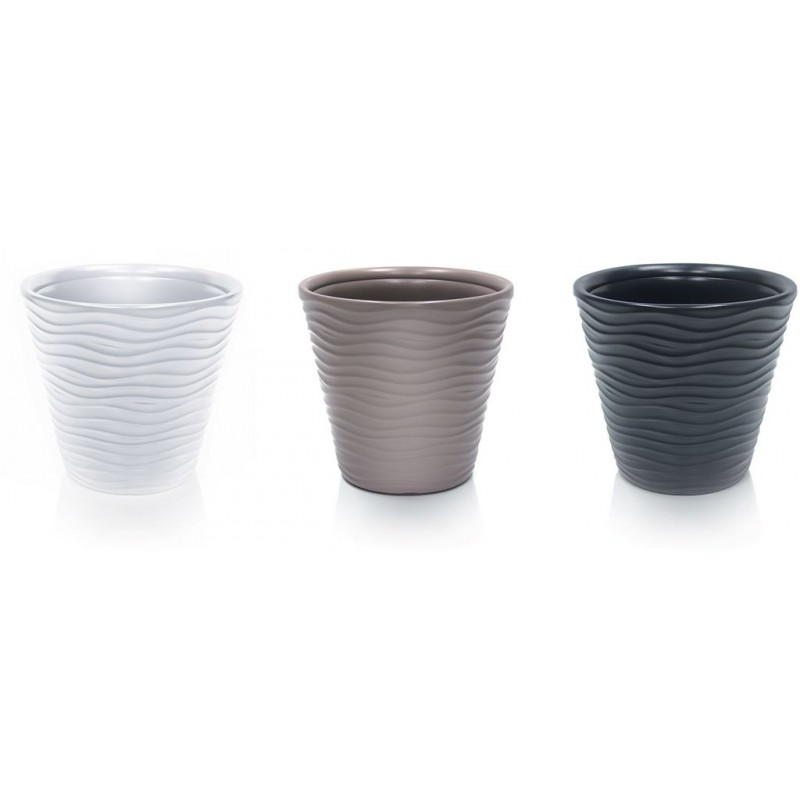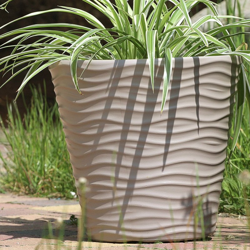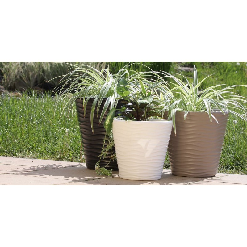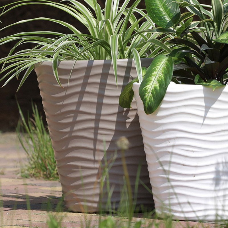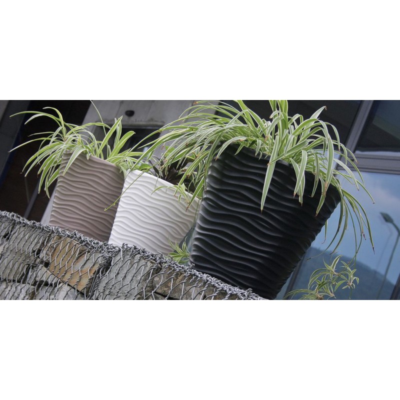 Celoroční, mrazuvzdorná kolekce květináčů WAVE je inspirovaná ručně modelovanou keramikou. Šametový povrch zdobí jemné vlnky.Dokonale se hodí do všech stylových interiérů, na zahradu, terasu, do zimních zahrad nebo kavárenských předzahrádek.
