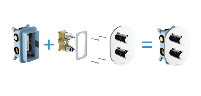 R-box nabízí velmi snadnou a rychlou montáž. Široké možnosti vlastní instalace - na sádrokarton i do klasické zděné příčky. R-box obsahuje materiál pro přichycení ke stěně, nezahrnuje přípojky pro vedení vody ani jiný vodoinstalační materiál.