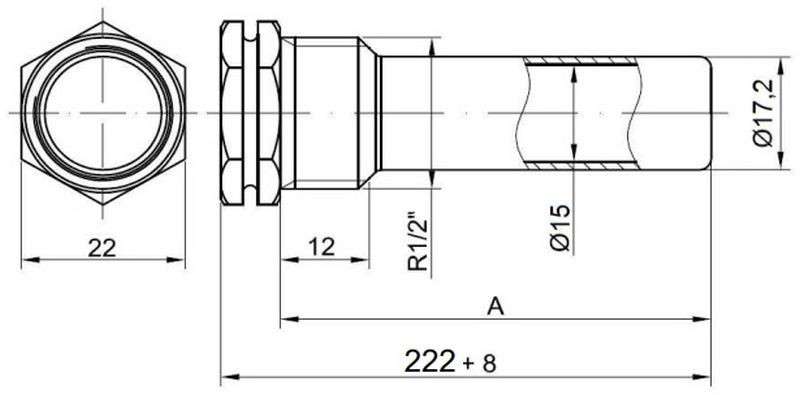 REGULUS Jímka pro 3 čidla, 15 x 17 x 230 mm, 1/2“, mosaz 15743