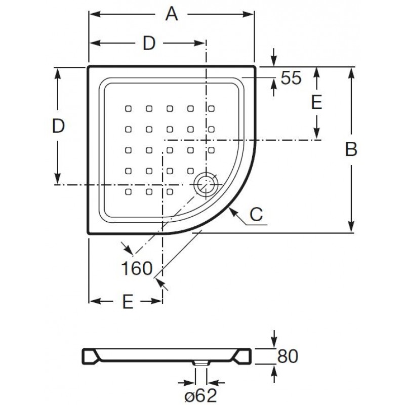 Roca Easy Angular akrylátová sprchová vanička čtvrtkruhová 80 x 80 cm, bílá 7374794000Rozměry: