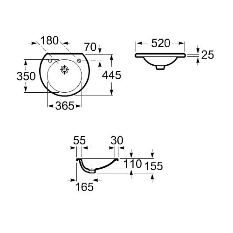 Roca Happening umyvadlo zápustné 52x45 cm 7327565000* bez otvoru pro baterii