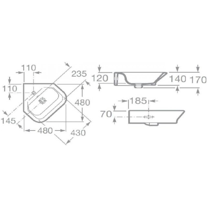 Roca The Gap rohové umyvadlo 48 x 48 cm, maxiClean 732747R00MRozměry výrobku: