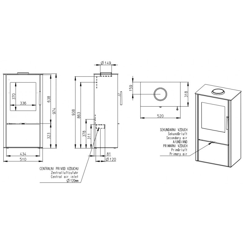 Průměr kouřovodu: 150 mm