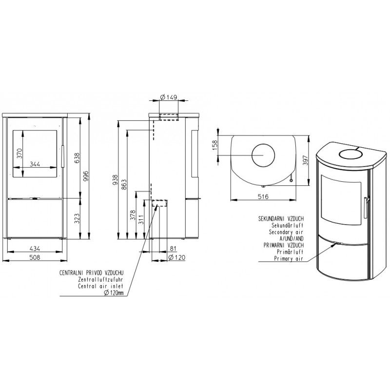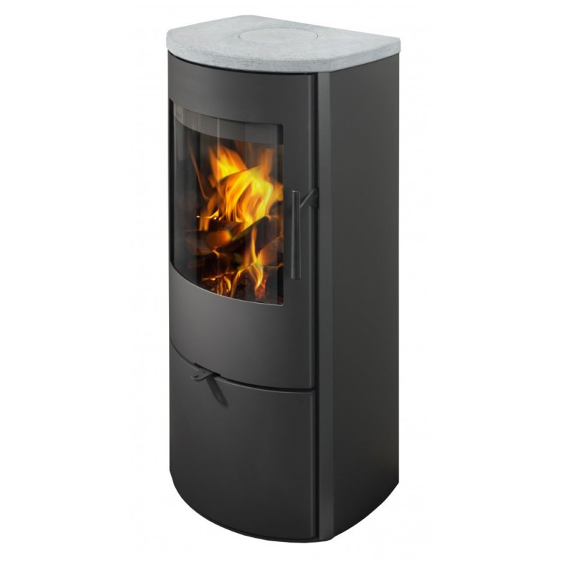 Romotop Alpera G05 krbová kamna, plech, kámen"Prostorově nenáročná kompaktní kamna vyváženého designu".