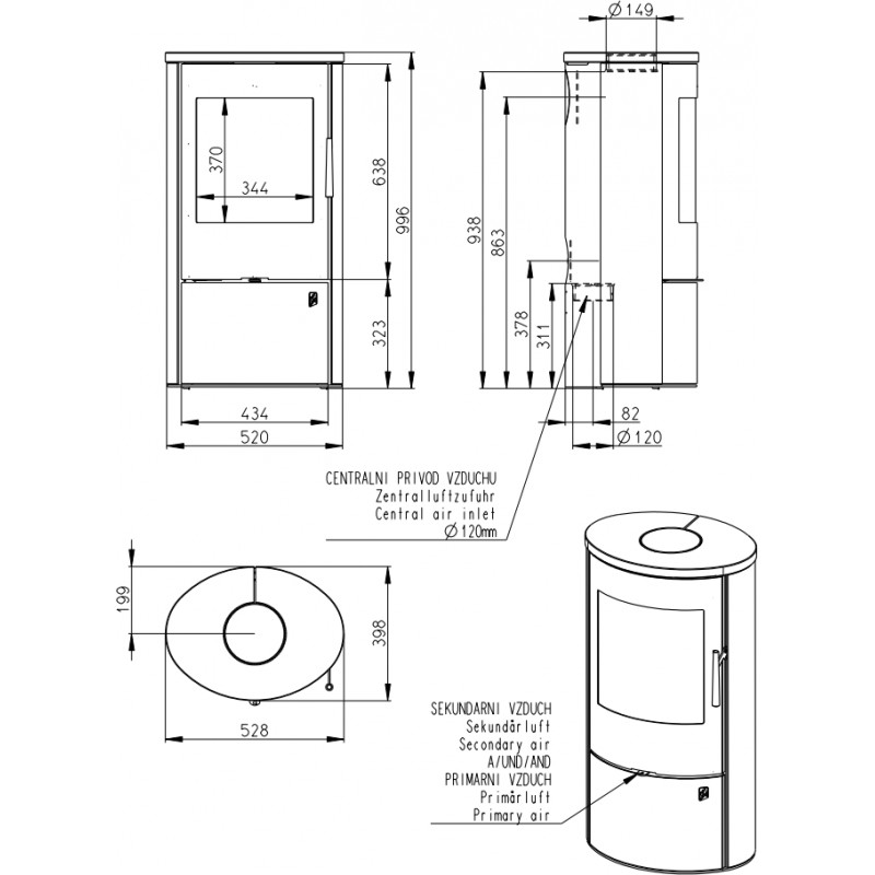 Průměr kouřovodu: 150 mm