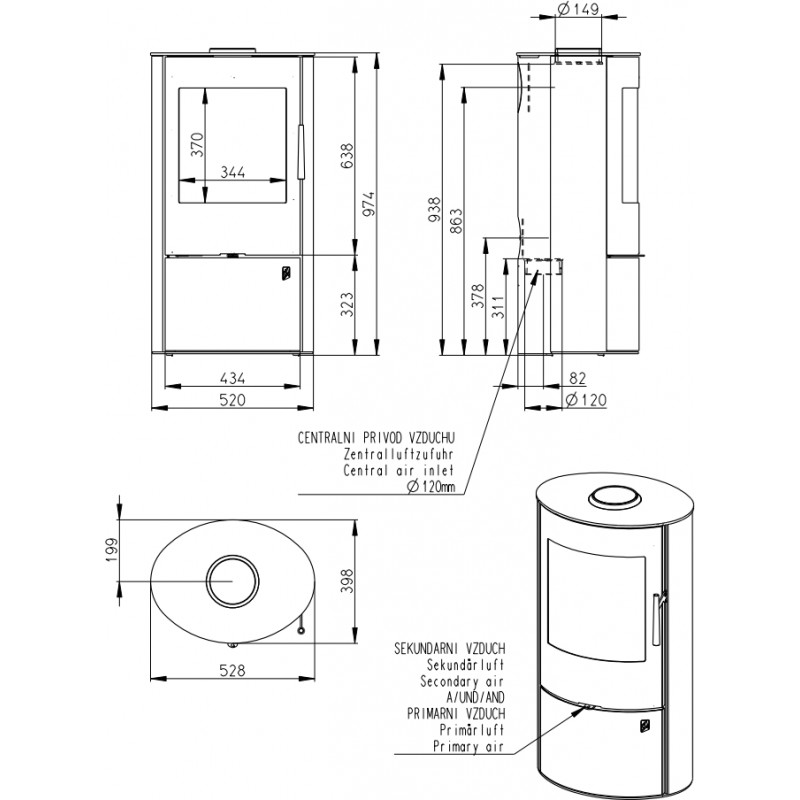 Romotop Evora 03 krbová kamna plech"Prostorově nenáročná kompaktní kamna s oblíbenou oválnou základnou".