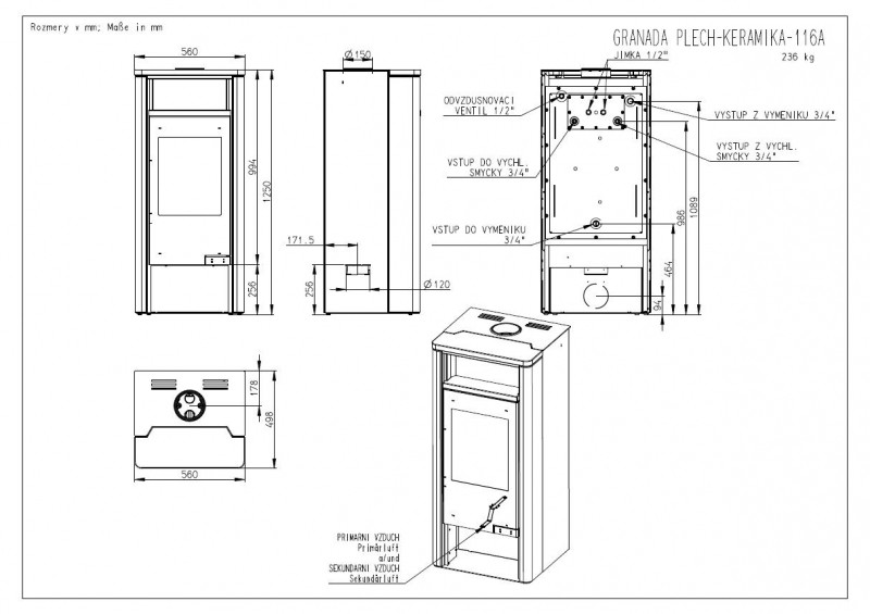 Romotop Granada 01 krbová kamna, keramika, s teplovodním výměníkem 1 - 9 kWKrbová kamna GRANADA s teplovodním výměníkem a centrálním přívodem externího vzduchu se vyznačují kvalitou spalování a vysokým výkonem.