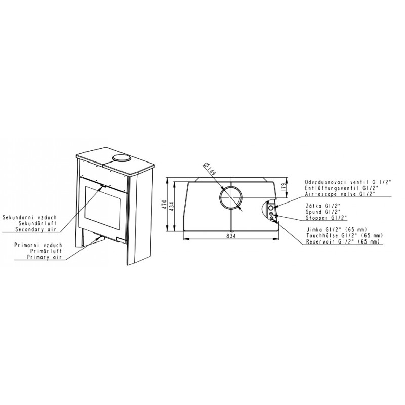 • šamotové obložení topeniště pro vysokou účinnost spalování