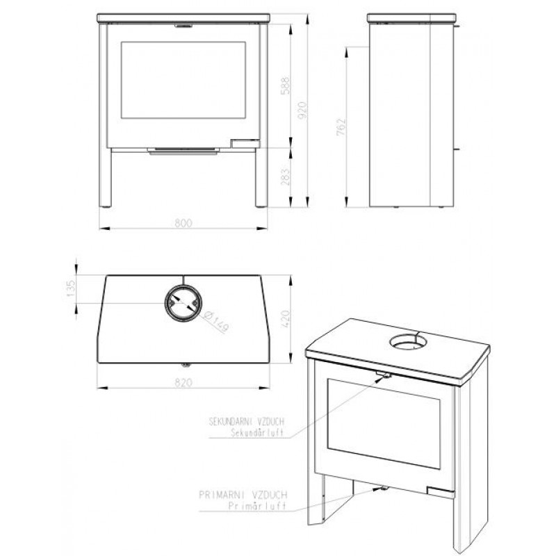 Na fotografii mají krbová kamna RIANO 03 horní desku z přírodního kamene - serpentinu.