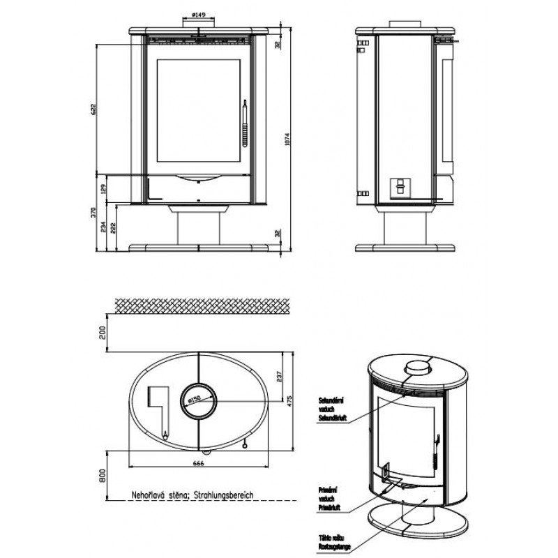 • přívod sekundárního vzduchu, díky kterému je sklo dvířek omýváno, a tak nedochází k usazování nečistot