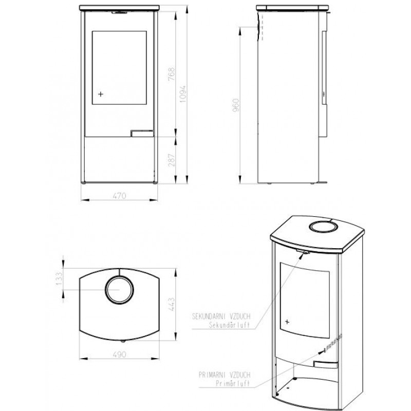 Romotop Tala 03 krbová kamna plech, rádiusová dvířka, kámen